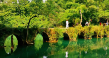 景区描述:景区全长7公里,得名于响水河上一座建于清道光年间的小七孔桥,融山、水、洞、湖、瀑为一体,巧夺天工,浑然天成。有悠蓝深邃的卧龙潭,林溪穿插的水上森林,潭瀑交错的六十八级瀑布,飞流狂泻的拉雅瀑布,古风亦存的七孔古桥,一起去探寻地球绿宝石的神奇与瑰丽。游览完毕乘车前往酒店入住。