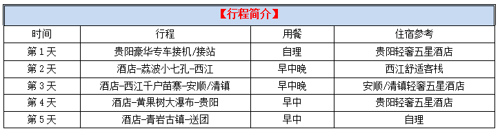 ü 酒店含早,全程6正餐,正餐标准30元/人,地道黔味体验。