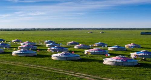 早餐后乘车前往“草原煤都”霍林郭勒市,霍林郭勒市是一个因煤而建,由煤而兴的城市。地处科尔沁草原、锡林郭勒草原和呼伦贝尔草原三大草原交汇地带,途经科尔沁草原腹地扎鲁特山地草原,连绵的山川下,连绵的山川下,清澈的小溪在欢快流淌,远处的蒙古包就像飞落的大雁一样镶嵌在草原上,尽赏科尔沁草原风光。可牧民家访到牧民家中做客-品尝蒙古传统小吃:炒米、奶茶、听马头琴、赏蒙古族歌手献歌,感受内蒙古牧民的热情好客!体验草原牧民别样的生活, 领略马背民族的率真与豪情。在这里感受一站式的草原体验项目,特别赠送:【祭祀敖包】。抵达霍林郭勒后首先映入眼帘的是迎宾大道,和牧羊女广场。后赴乌拉盖草原,行走在天边乌拉盖草原,感受锡林郭勒草原的豪放(乌拉盖草原是世界上保存最完好的天然草原,属森林草原向典型草原过渡地带, 以典型草原为主,动植物种类繁多,水资源丰富。由于乌拉盖草原具有完好的草原生态性,由法国导演让·雅克·阿诺执导,冯绍峰、窦骁等主演的电影《狼图腾》取景于此,它是《狼图腾》的拍摄地和故事背景地。后前往【九曲弯景区】行走在天边草原,亲身走进《狼图腾》拍摄地, 感受苍狼之地的辽阔、险峻,了解游牧民族的草原情和对狼性的理解;【高尧乌拉山观礼台】美丽的乌拉盖河在这里由宽缩窄,在辽阔的草原上千回百转宛如一条绿色的飘带,目力所及之处毫无遮掩,就像一张天然的油画呈现在眼前;后前往乌拉盖草原蒙古大营,进行热烈的草原迎宾仪式:(下马酒、祝酒歌、献哈达)在这里感受一站式的草原体验项目。特别安排草原那达慕:赛马表演,马术表演,博克表演等传统 蒙古族竞技比赛,感受蒙古族传统活动,赛马:是蒙古族男儿三艺之一,比赛开始在众人的欢呼声中 扬鞭策马,竞相追赶,观看者欢呼鼓掌,先到达终点的为胜者!马术表演:一起领略马背上的蒙古民 族人马合一,蒙古人与蒙古马的配合无缝衔接,马背上的惊险动作让眼帘应接不暇。博克比赛:意为 摔跤,它是蒙古族"男儿三艺"之一,属蒙古族传统的体育项目。搏克--蒙古语,是结实的意思,"攻不 破、摔不烂、持久永恒"。它在 13 世纪在我国建立举世闻名的大元帝国的蒙古族先进文化的结晶。那 达慕结束后可自由选穿蒙古袍拍照,抱羊羔,蒙古射箭,草原拔河,草原足球等草原娱乐项目,学习 讲蒙古话,写蒙古字做一次真正的蒙古人,晚餐后参加内蒙特色风情【篝火晚会】(1 小时左右),聆听悠扬的马头琴声,与蒙古族姑娘小伙一起载歌载舞,篝火结束后入住蒙古包,繁星点点的草原夜空,给您带来难忘回忆。