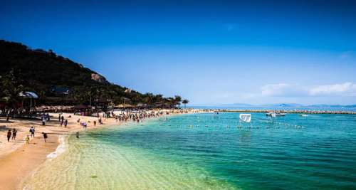 【亚龙湾海底世界沙滩】这里沙滩、阳光、碧水,绿树构成一幅美丽的滨海风光