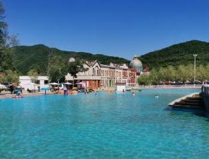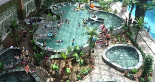 温泉度假酒店:设计及建筑风格独特,景区内有热带雨林式温泉嬉水乐园。浅水区小品池,中型玛雅水寨、大型造浪池、彩红竞赛滑梯,冲天回旋皮筏滑梯、雪橇滑梯、炮筒滑梯等众多水上游乐项目。温泉馆,拥有来自南方的花草树木百余种,内部是自然采光,热带植物……俨然一幅热带雨林的景象。游泳馆、各类泡池 18 个,温泉鱼疗池,SPA 池、花药浴、五行池等,大型环廊亭阁于绿意掩映下景致迷人,大型汗蒸区分布多种功效房、玉石房、玛瑙房、蒙古包、玉石子浴等。