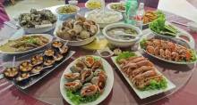 【用餐】一早两正餐渔家餐,10人一桌,10菜1汤,6个海鲜,4个菜,如果散客不拼桌,按人数上菜晚餐是海鲜烧烤自助