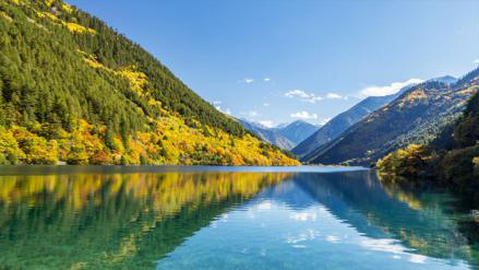 九寨沟地处青藏高原向四川盆地过渡地带,地质背景复杂,碳酸盐分布广泛,褶皱断裂发育,新构造运动强烈,地壳抬升幅度大,多种营力交错复合,造就了多种多样的地貌,发育了大规模喀斯特作用的钙华沉积,以植物喀斯特钙华沉积为主导,形成九寨沟艳丽典雅的群湖,奔泻湍急的溪流,飞珠溅玉的瀑群,古穆幽深的林莽,连绵起伏的雪峰。在这里游览一整天,可以充分感受碧蓝澄澈的翠海湖水亲吻脸颊,急泻倾挂的落日朗瀑布凌空飞落,风貌奇丽的彩林神秘莫测。