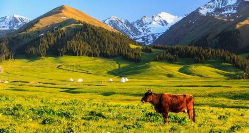 13:00-22:30 沿着中巴友谊公路,一路从帕米尔高原下来,我们可以看到高山野牦牛,远观 公格尔九别峰,慕士塔格峰。中途我们在【卡拉库里湖】游览,俯看湖水的宽广波澜,颜色 的变幻下,可以尽情的凹造型。高大的慕士塔格峰、公格尔峰、公格尔九别峰等终年不化的 雪山,将它环抱,天气晴朗之日,水面映衬着连成片的雪山,站在湖边远眺高耸的雪山,近 观平静的湖泊。为这个湖增添了神奇而美丽的色彩。