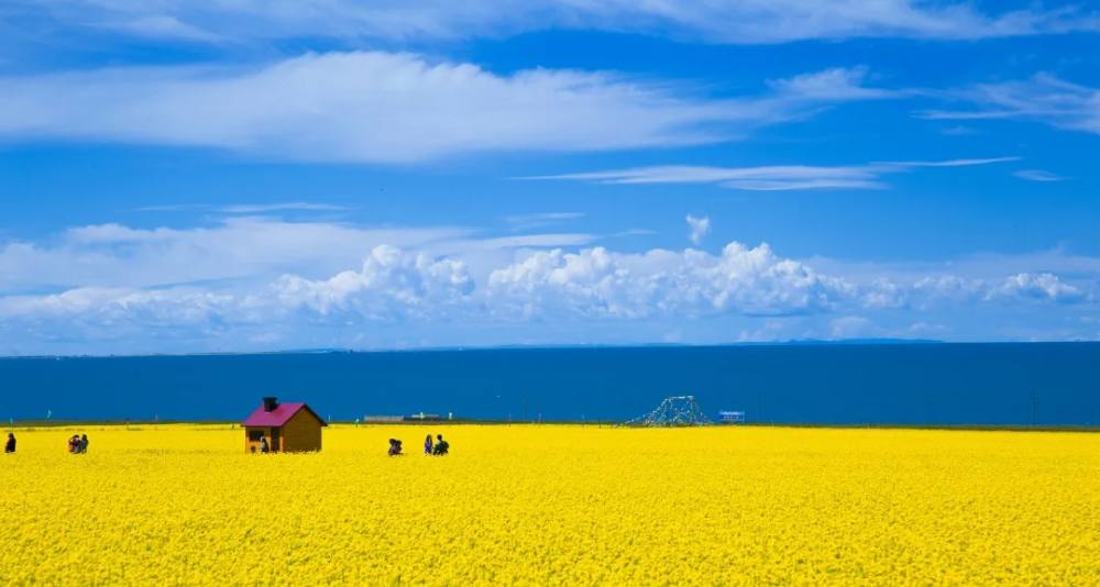 晚上睡在青海湖畔,途中我们会经过【切吉草原】,右边是油菜花海,左边是蔚蓝的青海湖和肥沃草原,成群的牛羊星罗棋布于绒绒草场上,画面和谐怡然自得。