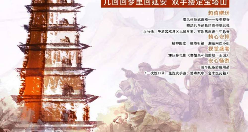 推荐自费 | 1.《驼铃传奇》会跑的大型实景演艺(自理 298-398 元,演出约 70 分钟) 2.《秦俑情》/【复活的军团】,兵马俑大型史诗历史题材剧(自理 298-358 元,演出约 70 钟) 3.《延安保育院》(门票 238 元,自愿自费)或《红秀·延安》(门票198 元,自愿自费) |