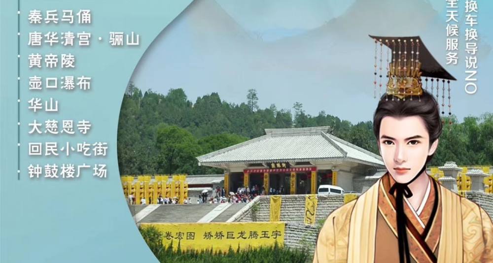 景点门票 | 行程所列景点首道门票:黄帝陵·轩辕庙、壶口瀑布、乾陵 、法门寺、秦始皇陵兵马俑博物院、唐华清宫·骊山、华山、大慈恩寺 |