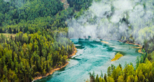 早餐后沿 216 国道北上前往富蕴或可可托海镇,途经:中国第二大沙漠-古尔班通古特 沙漠,火烧山、卡拉麦里有蹄类动物保护区,有幸的话可以看见国家一级保护动物普 氏野马,乘车前往位于额尔齐斯大峡谷的【可可托海国家地质公园】可可托海意思为" 绿色的丛林"。蒙古语意为"蓝色的河湾"。正如其名,可可托海的水是蓝色的和绿色的, 这里是全国第二寒极。参观【白桦林】,野生桦树林生长在额尔齐斯河凸岸河湾上, 妩媚婆娑,柔软的枝条舒缓下垂,伴著清风纤纤舞动,绰约若处子,曼妙无比【神钟山】,又称阿米尔萨拉峰,晚北屯入住酒店。