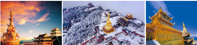 。【行】7:00成都衣冠庙出发,经过成雅高速,乘车前往峨眉山,午餐,品尝峨眉山当地美食,午餐之后前往峨眉山游览【金顶风景区】乘观光车(费用90元/人,费用自理)至雷洞坪停车场,午餐后,可乘坐索道(往返 120 元/人自理 12.15-1.15往返50/人自理)登至峨眉主峰—金顶(海拔 3077)在最高的观景平台观云海、佛光[视天气情况] 等自然奇观以及金银铜殿、十方普贤等,在世界最大的朝拜中心祈福许愿。金顶是峨眉山寺庙和景点最集中的地方,高 26 米、总面积 1614 平方米的金顶及金银铜殿各一座。后乘车入住酒店,然后【游】峨眉山金顶。